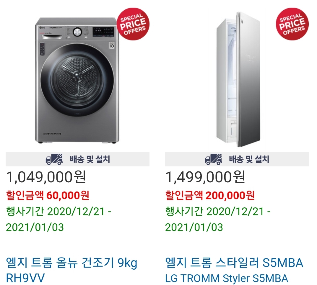 엘지 트롬 올뉴 건조기 9kg 엘지 트롬스타일러 S5MBA 제품도 할인 중 입니다