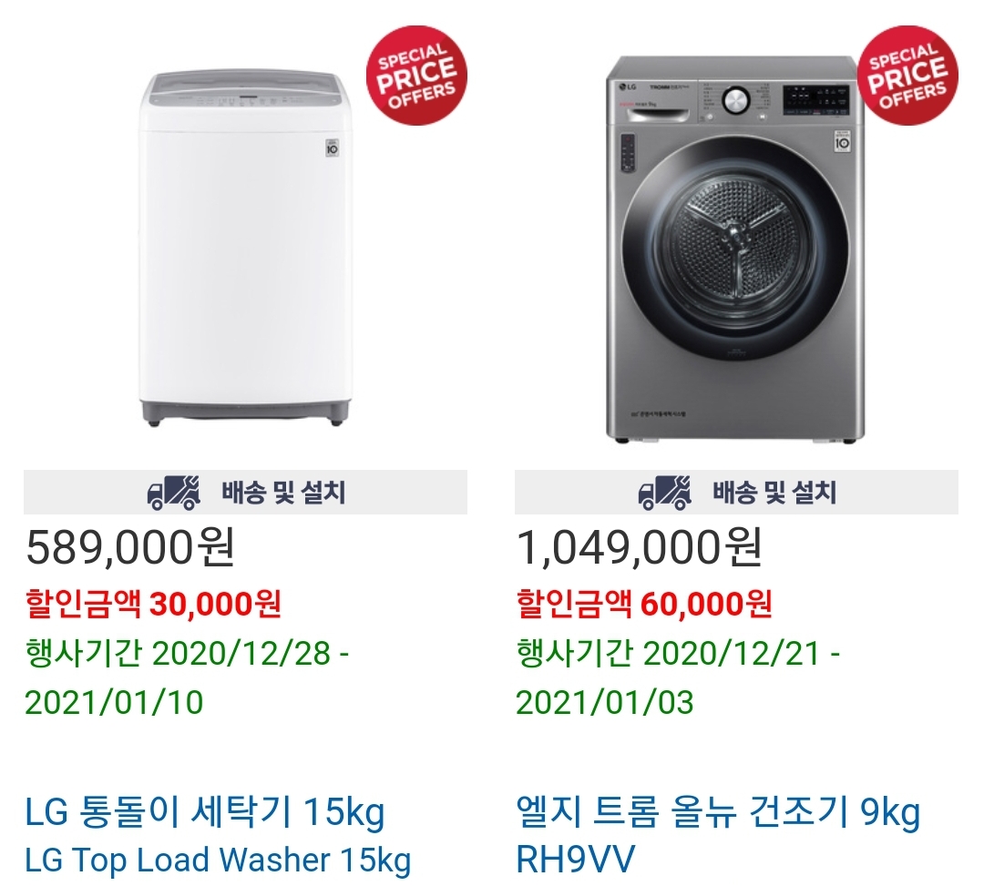 lg통돌이 세탁기 엘지 트롬 올뉴 건조기 9kg 할인 중 입니다